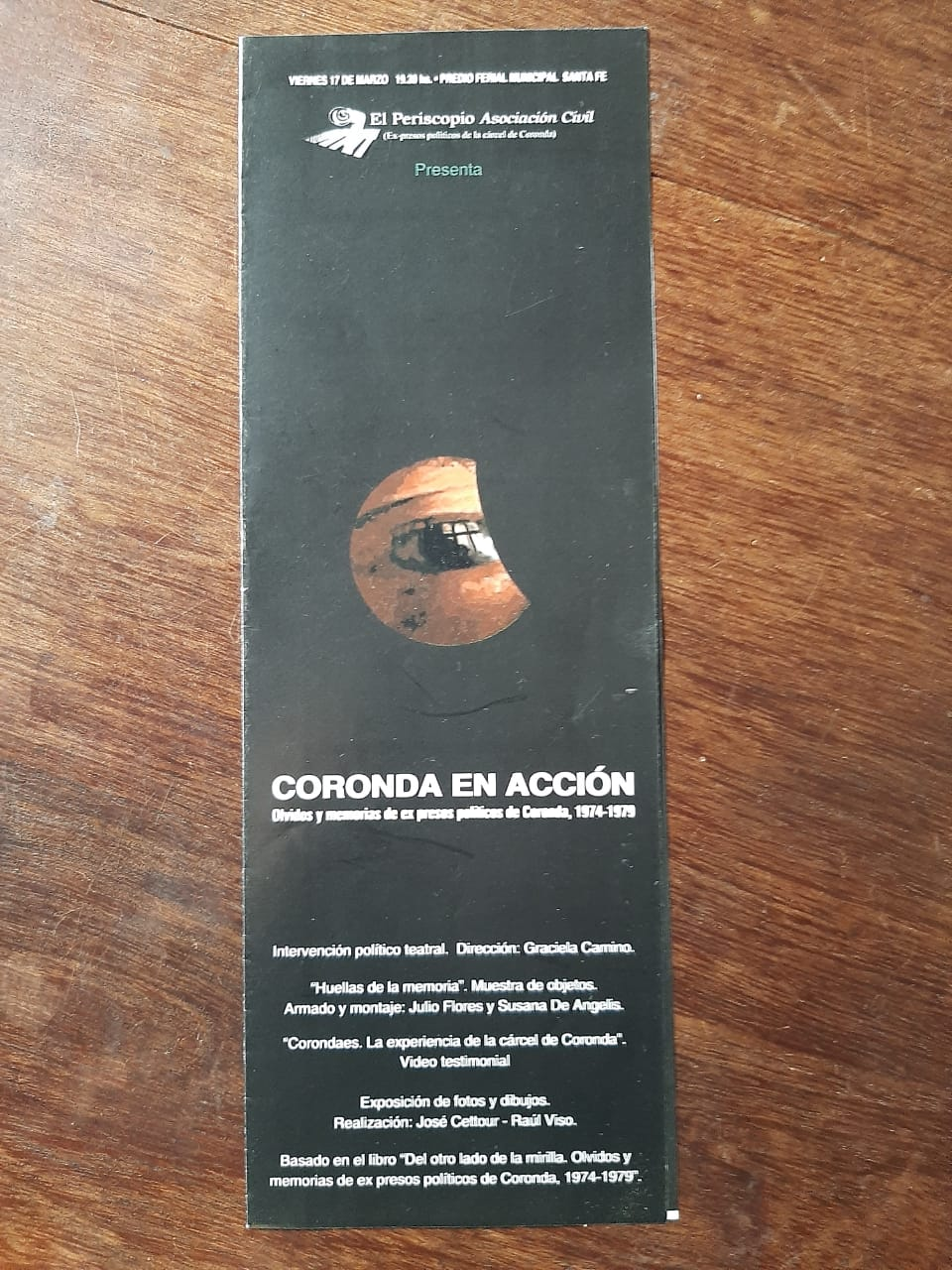 El 17 de Marzo del 2006, llevamos nuestra obra «Coronda en acción» al Predio Ferial Municipal de la ciudad de Santa Fe. Esta fecha de presentación, dejó recuerdos inolvidables en nuestra memoria, así como también la posibilidad de revivirlo. Elegimos mostrarles lo que fue la presentación. Haciendo click AQUI pueden ver diversas imágenes y una grabación completa de la misma. Cabe destacar que, dicha obra fue presentada de forma conjunta con una muestra de los objetos traídos de la cárcel.