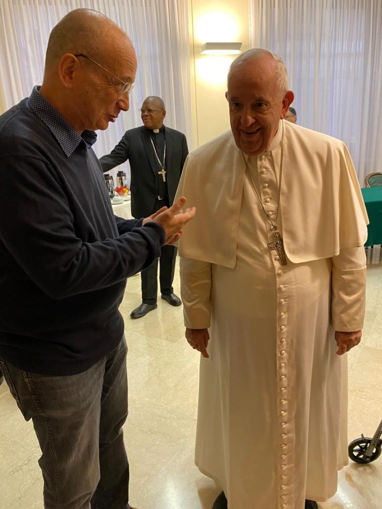 Sólo había pasado un par de meses desde el lanzamiento en Suiza italiana e Italia del libro Grand Hotel Coronda, cuando El Periscopio pudo hacerle llegar al Papa Francisco un ejemplar en italiano y uno de la versión original en español (Del otro lado de la mirilla).